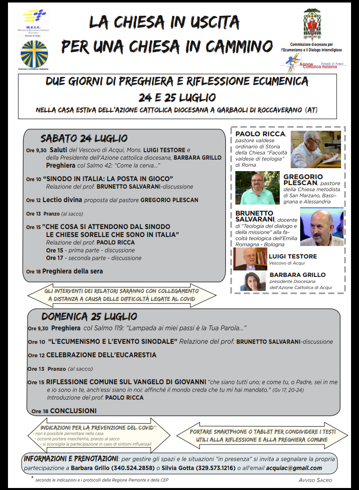 19 Luglio 20218 Settembre 202224-25 luglio a Garbaoli -due giorni di preghiera e riflessione ecumenica condividi su