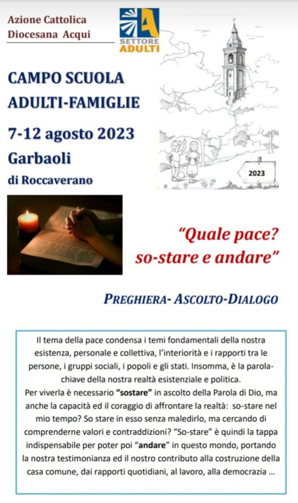 5 Agosto 20235 Agosto 2023AC Diocesana- Campo scuola adulti-famiglie 7 – 12 agosto e Campo adulti famiglie 2023 condividi su