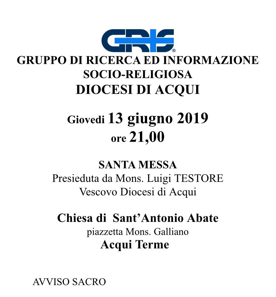 10 Giugno 20198 Settembre 2022GRIS – giovedi 13/6 S.Messa presieduta da Mons. Luigi Testore condividi su