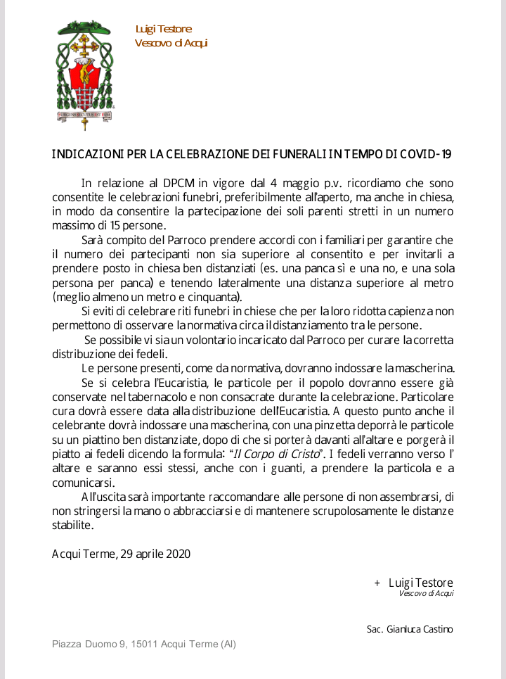 30 Aprile 20208 Settembre 2022Indicazioni per la celebrazione dei funerali in tempo di Covid19 condividi su