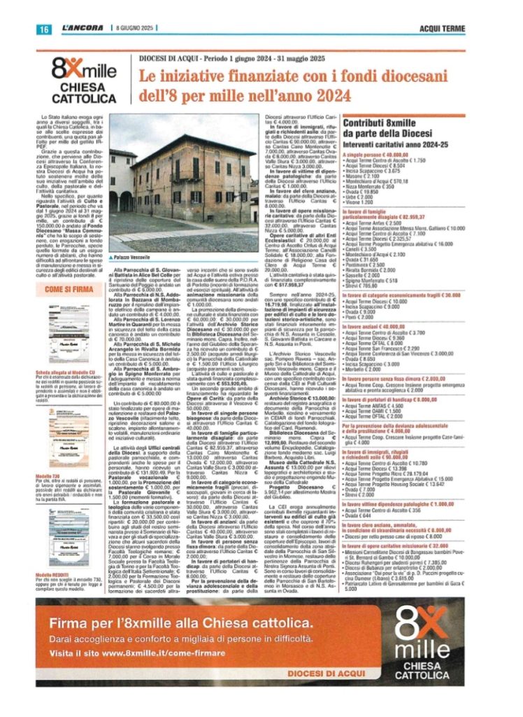 Le iniziative finanziate con i fondi diocesani dell’8 per mille nell’anno 2024