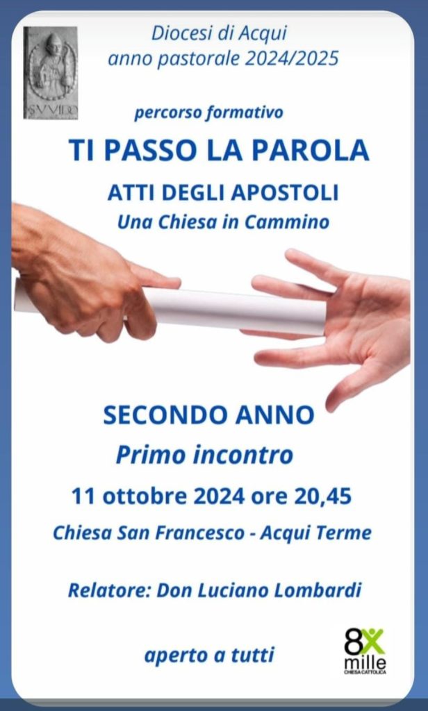 Percorso formativo TI PASSO LA PAROLA ATTI DEGLI APOSTOLI Una Chiesa in Cammino SECONDO ANNO Primo incontro 11 ottobre 2024 ore 20,45