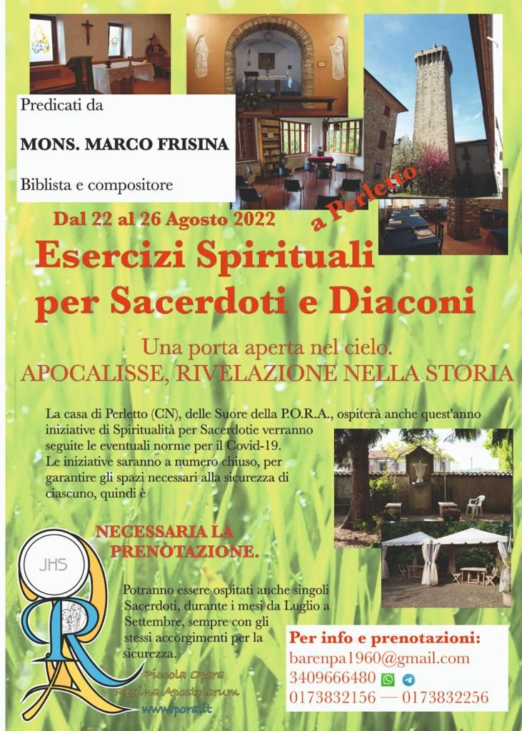 Perletto dal 22 al 26 agosto – Esercizi spirituali per Sacerdoti e Diaconi