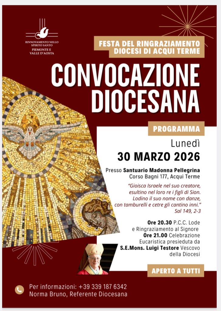 RINNOVAMENTO NELLO SPIRITO SANTO PIEMONTE E VALLE D’AOSTA FESTA DEL RINGRAZIAMENTO DIOCESI DI ACQUI TERME PROGRAMMA Lunedì 30 MARZO 2026