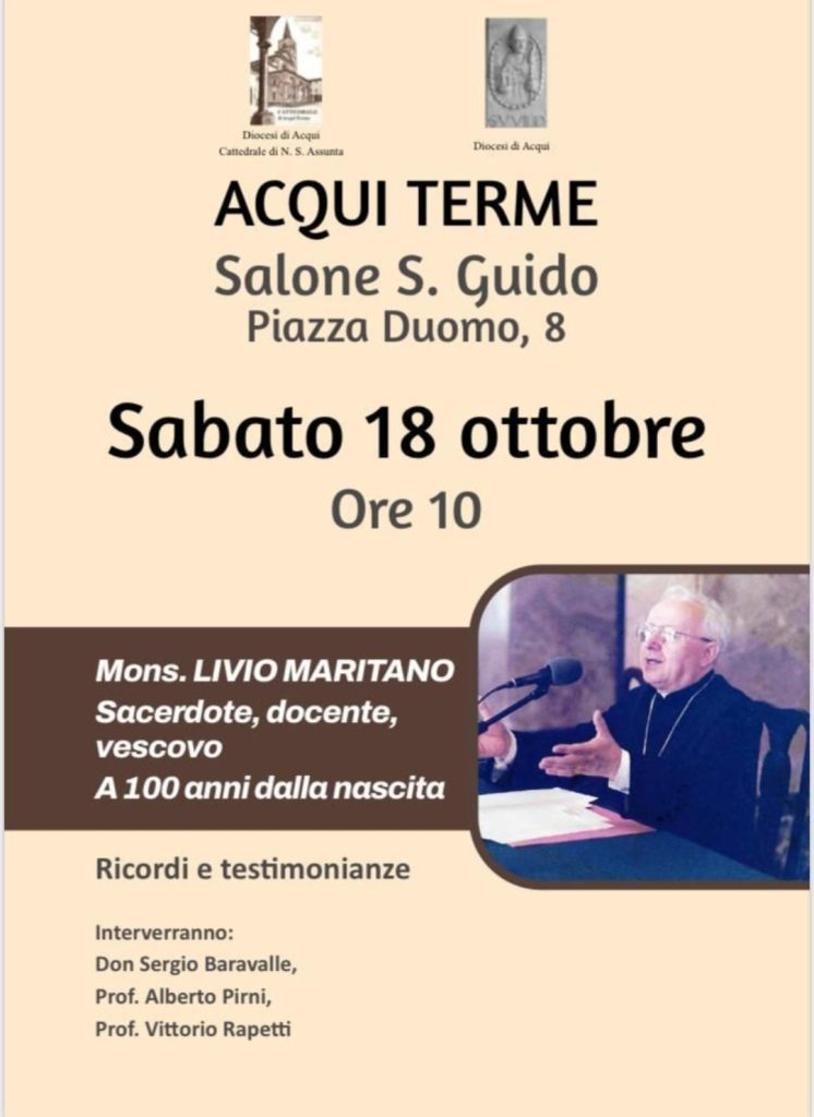 5 Ottobre 2025Sabato 18 ottobre Ore 10 Mons. LIVIO MARITANO Sacerdote, docente, vescovo A 100 anni dalla nascita condividi su