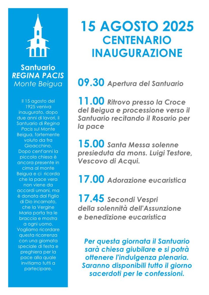 Santuario REGINA PACIS Monte Beigua -15 AGOSTO 2025 CENTENARIO INAUGURAZIONE