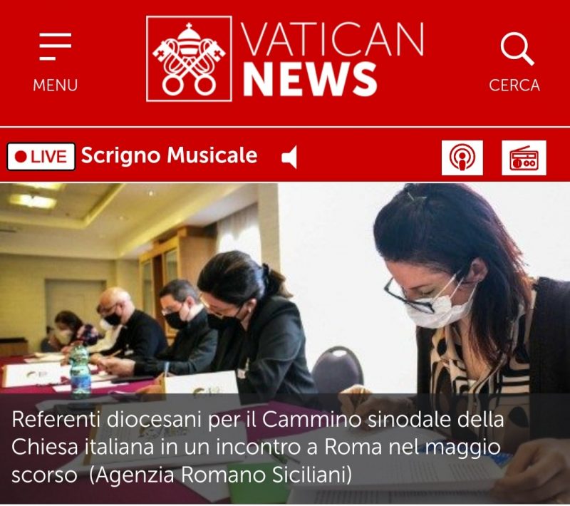 E’ da oggi online la Sintesi della fase diocesana del Sinodo 2021-2023 sul tema “Per una Chiesa sinodale:Comunione, partecipazione e missione”, che la Presidenza della Cei ha consegnato il 15 agosto alla Segreteria generale del Sinodo dei vescovi. “L’ esperienza è stata entusiasmante per chi ha accettato di correre il rischio di impegnarsi”, si legge nel documento, che sottolinea l’ampia partecipazione ai momenti di confronto e di dialogo vissuti nelle realtà ecclesiali locali