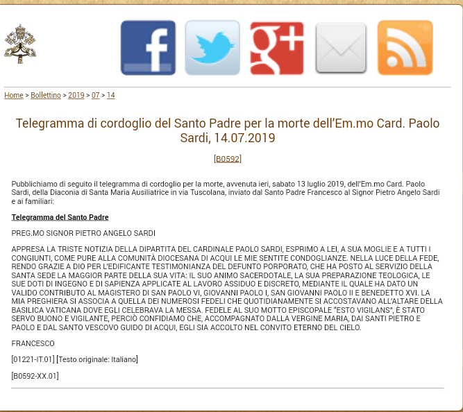 Telegramma del Santo Padre